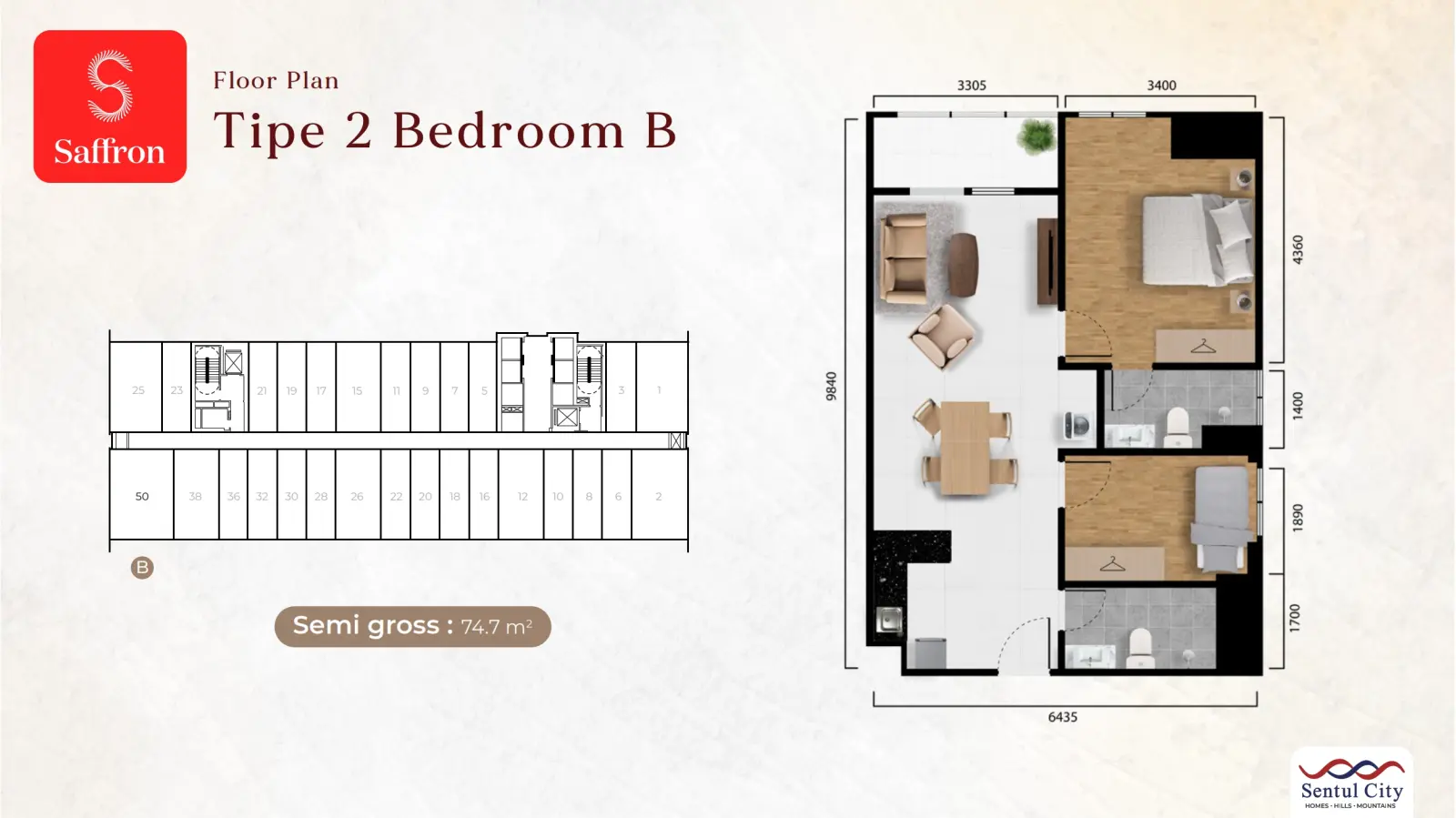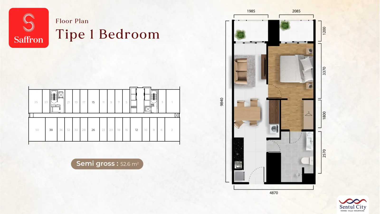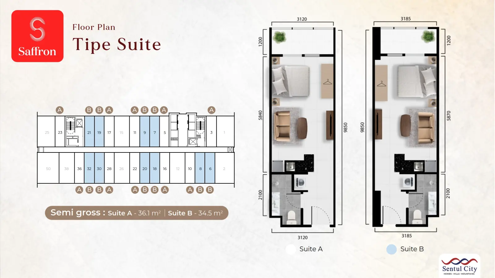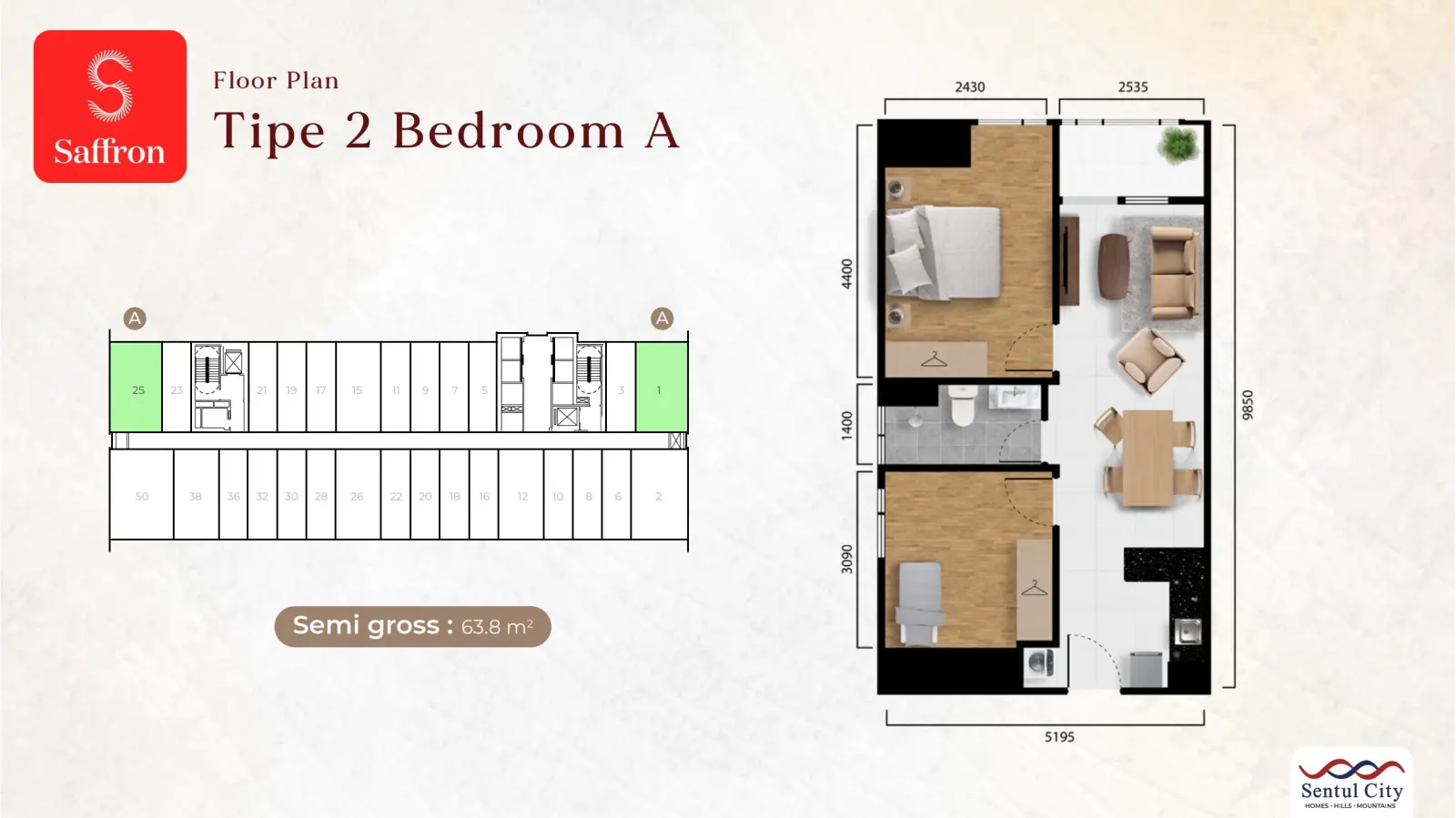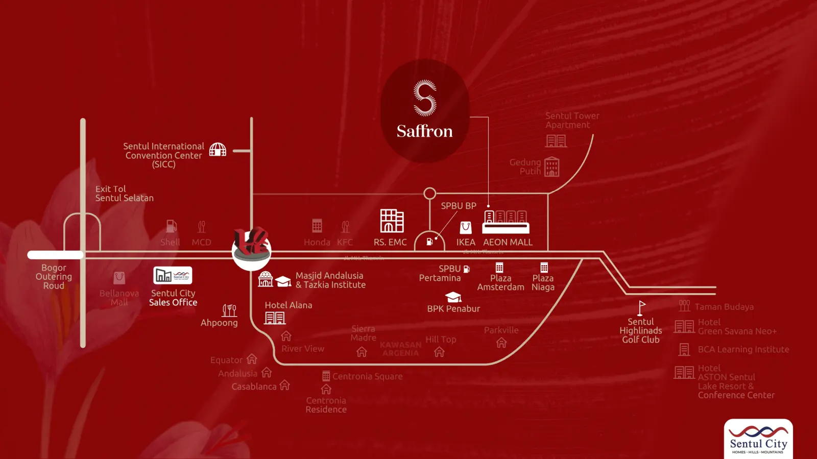 Sentul CitySaffron Apartment berlokasi tepat di area CBD Sentul City. Hunian modern yang merupakan bagian dari Mixed Use Development dengan pemandangan alam pegunungan khas Sentul City.